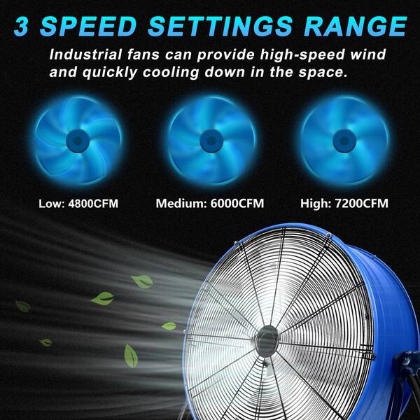 Heavy Duty Drum Industrial Fan 24 In. 3 Fan Speeds Floor Fan in Blue with 360° Adjustable Tilt and Rotation