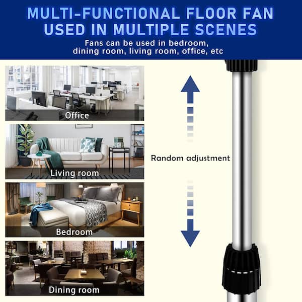 Multi-functional 16 in. 3 Speeds Pedistal Fan in Black Height Adjustable with Timer