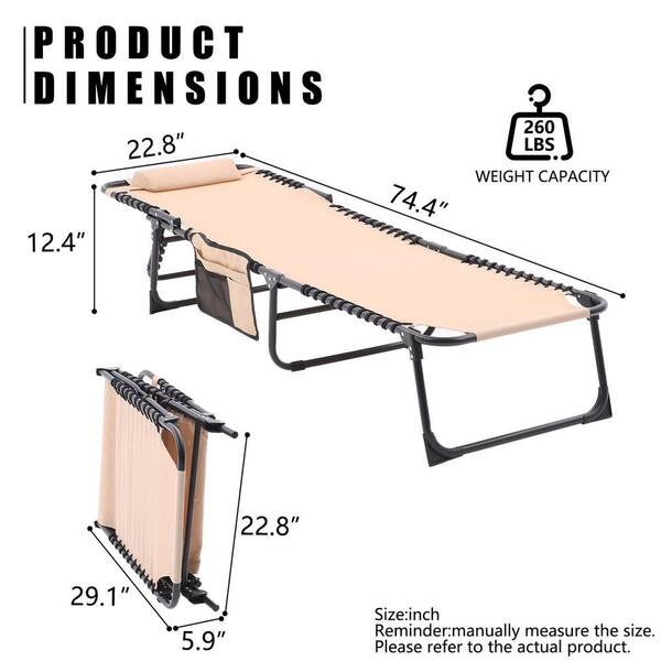 Portable 74.4 in.L khaki 2-Piece Metal Adjustable and Reclining Outdoor Chaise Lounge with Pillow and Side Pocket