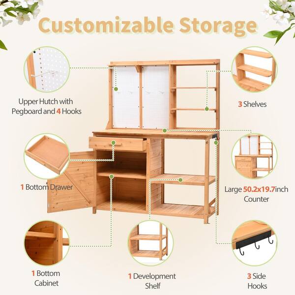 Rustic 50.2 in. x 19.7 in. x 65.7 in. Natural Wood Patio Outdoor Raised Bed Potting Bench Garden Workstation with Hutch