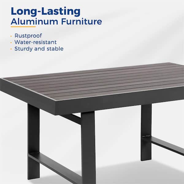 Tall High Grey Aluminum 51.5 in. W Rectangle Outdoor Dining Table