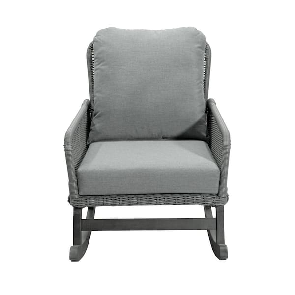 Wicker Outdoor Rocking Chair with Gray Cushion and Durable Wooden Frame
