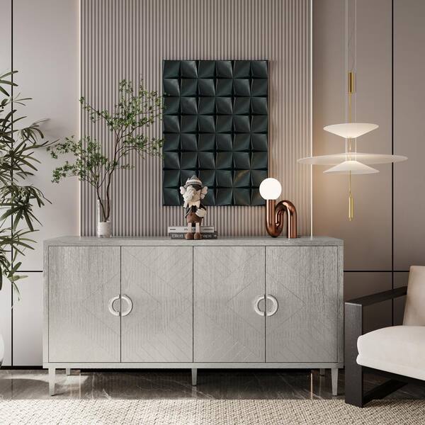 Champagne Wood Pantry Organizer, Storage Cabinet with 4-Door, Pine Legs, Solid Wood Pulls and MDF