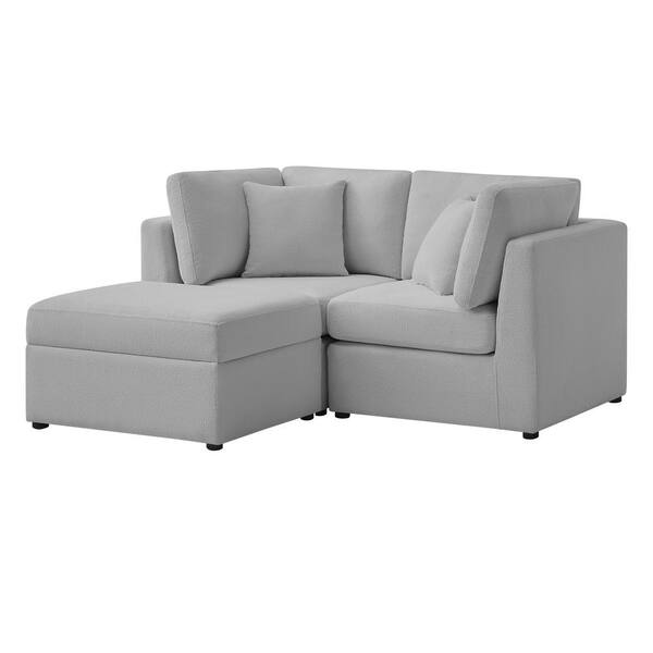 Chandler 66 in. Square Arm 3-Piece Polyester Performance Fabric Rectangle Sectional Chofa-Ivory