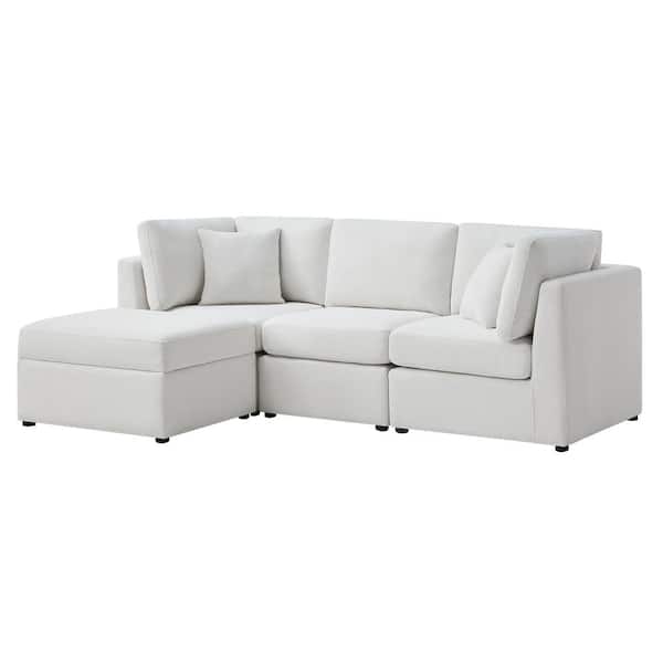 Chandler 93 in. Square Arm 4-piece Polyester Performance Fabric Rectangle XL Sectional Sofa in Ivory-Storage Ottoman