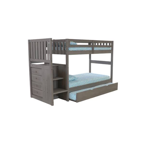 Charcoal Mission Gray Twin Staircase Bunkbed with Twin Trundle