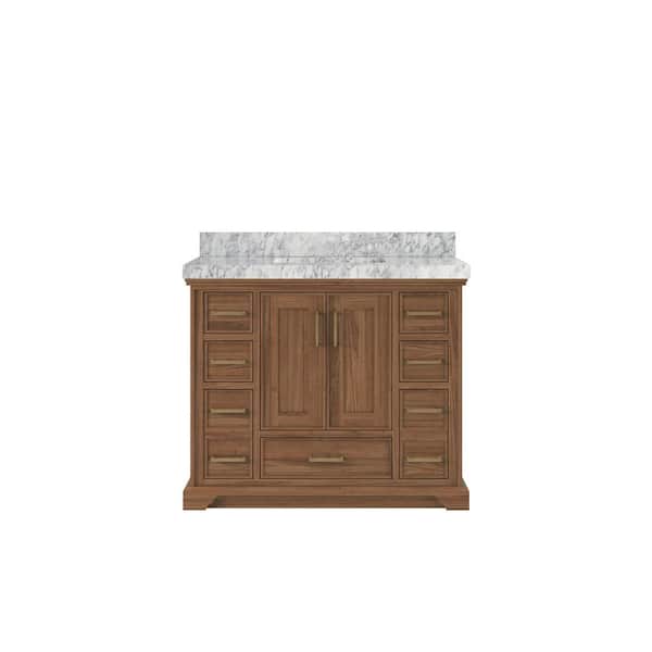 Charlotte Teak 42 in. W x 22 in. D x 36 in. H Single Sink Bath Vanity in Dark Natural with 2" Carrara Marble Top