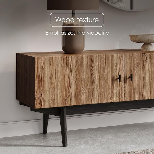 Chelsea 59 in. Brown TV Stand Fits for TV's up to 65 in. Slatted Design and Wood Legs