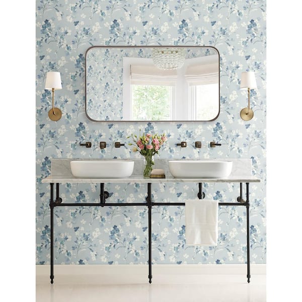 Azalea Light Blue Pre-Pasted Non-Woven Wallpaper Sample