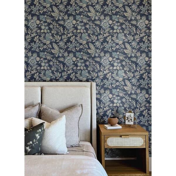 Begonia Indigo Blue Floral Trail Wallpaper Sample
