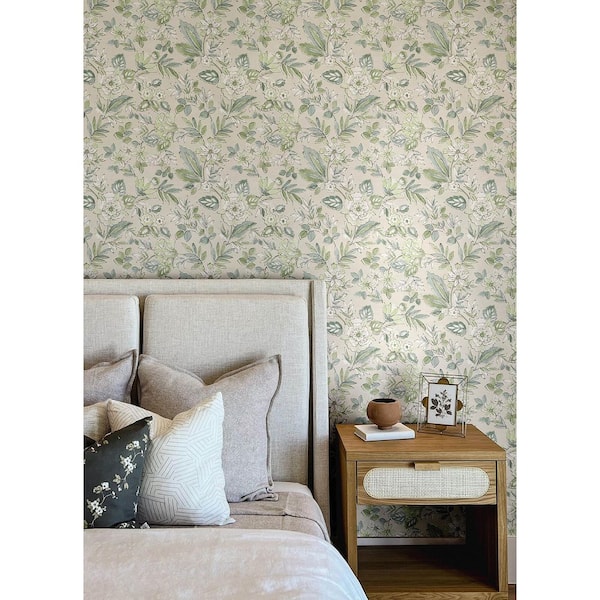Begonia Sea Green Floral Trail Wallpaper