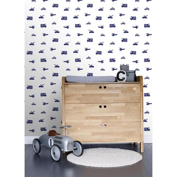 Blue Briony Vehicles Matte Paper Non-Pasted Wallpaper Roll