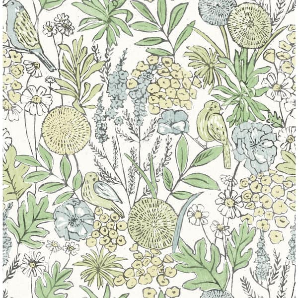 Goldfinch Green Birds and Blooms Wallpaper