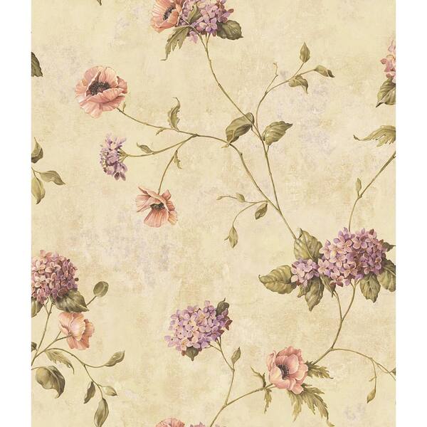 Henrietta Wheat Hydrangea Floral Trail Wallpaper