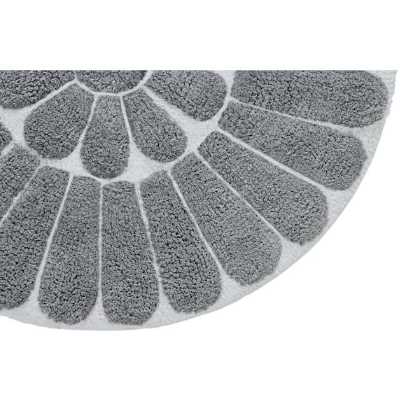 Chesapeake Bursting Flower 2piece White & Pewter Round Bath Rug Set (24 in. and 30 in.)