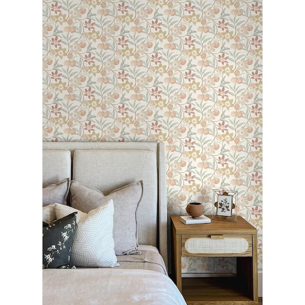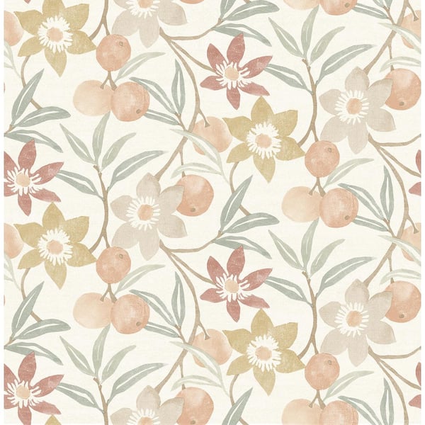 Passiflora Peach Red Fruit and Floral Wallpaper Sample