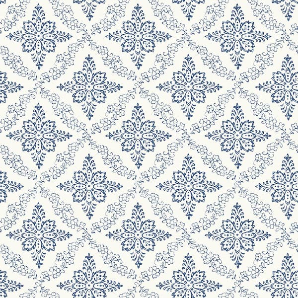 Wynonna Navy Geometric Floral Navy Paper Strippable Roll (Covers 56.4 sq. ft.)