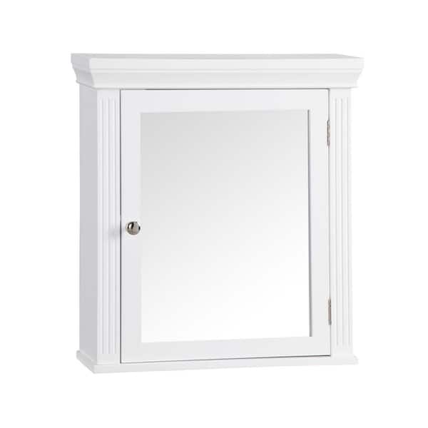 Chestnut 18.5 in. W x 20 in. H White Wooden Surface Mount Bathroom Medicine Cabinet with Mirror and Crown Molded Top
