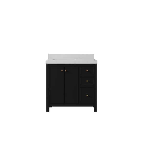 Chicago 36 in. W x 22 in. D x 36 in. H Single Left Offset Sink Bath Vanity in Black with 2 in. Carrara qt. Top
