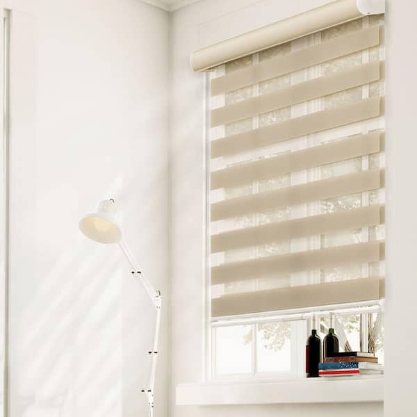 61 in. W x 72 in. L Striped Khaki Zebra Horizontal Roller Shade