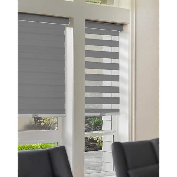 Cordless Light Filtering Dual Layer Polyester Zebra Roller Window Shade, Basic Slate 33 in. W x 72 in. L