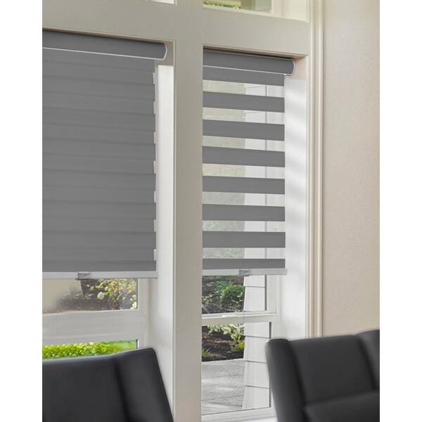 Basic Slate Cordless Cut-to-Width Light Filtering Dual Layer Zebra Roller Shade 63 in. W x 72 in. L