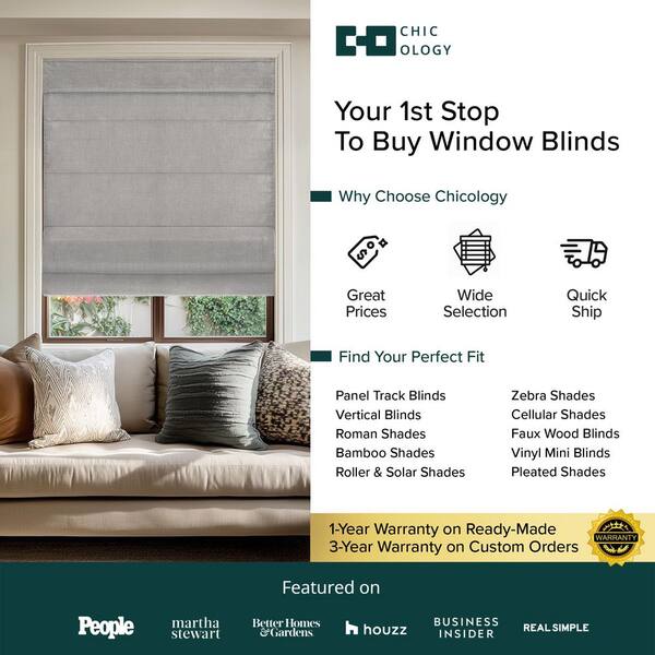 Belgian Denim Cordless Light Filtering Privacy Polyester Roman Shades 29 in. W x 64 in. L
