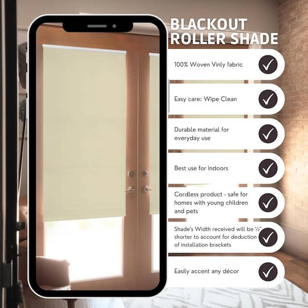 Cream Solid Cordless Blackout Privacy Vinyl Roller Shade 16 in. W x 64 in. L