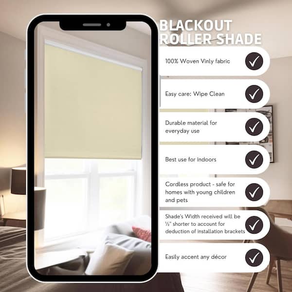 Cream Textured Cordless Blackout Privacy Vinyl Roller Shade 67.25 in. W x 64 in. L