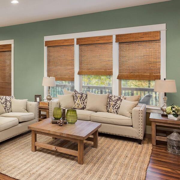 Cut-to-Size Belmon Antique Brown Cordless Light Filtering Bamboo Roman Shade 53.25 in. W x 72 in. L