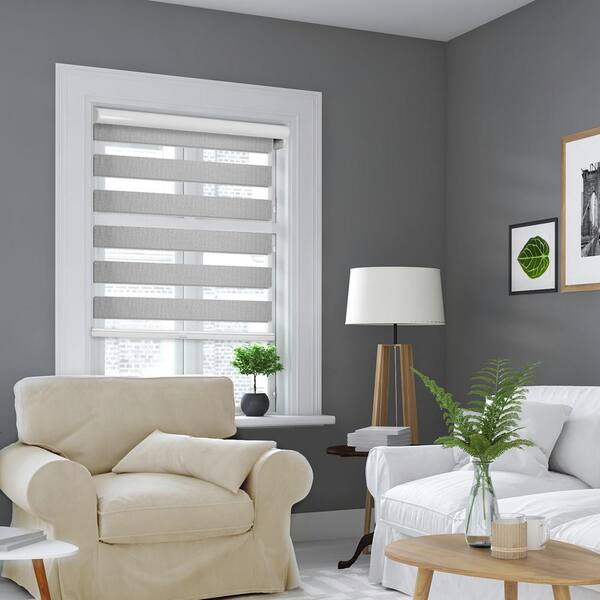 Cut-to-Size Icy Grey Cordless Blackout Dual Layer Privacy Polyester Zebra Roller Shade 28.25 in. W x 72 in. L