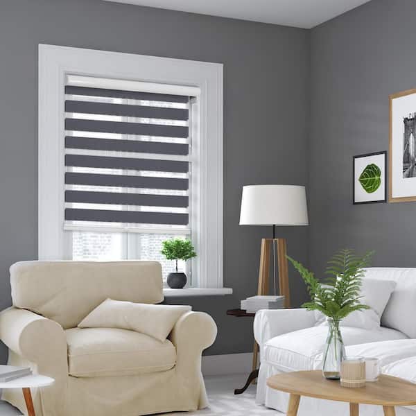 Cut-to-Size Onyx Cordless Light Filtering Dual Layer Privacy Polyester Zebra Roller Shade 60.25 in. W x 72 in. L