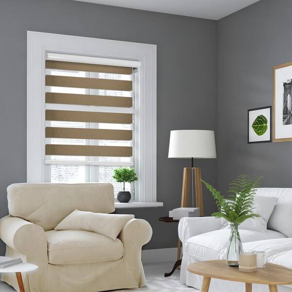 Cut-to-Size Sable Cordless Blackout Dual Layer Privacy Polyester Zebra Roller Shade 55 in. W x 72 in. L