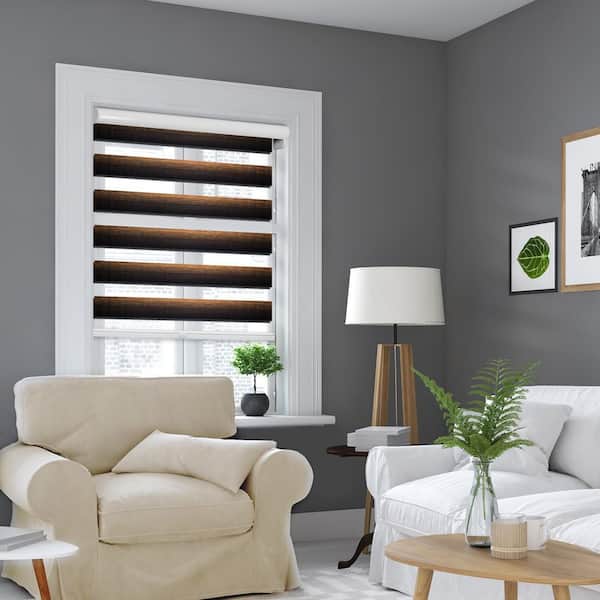 Cut-to-Size Smokey Walnut Cordless Light Filtering Dual Layer Privacy Polyester Zebra Roller Shade 29.5 in. W x 72 in. L
