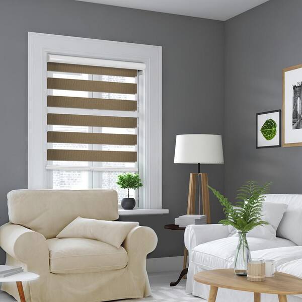Cut-to-Size Taupe Cordless Blackout Dual Layer Privacy Polyester Zebra Roller Shade 58.75 in. W x 72 in. L