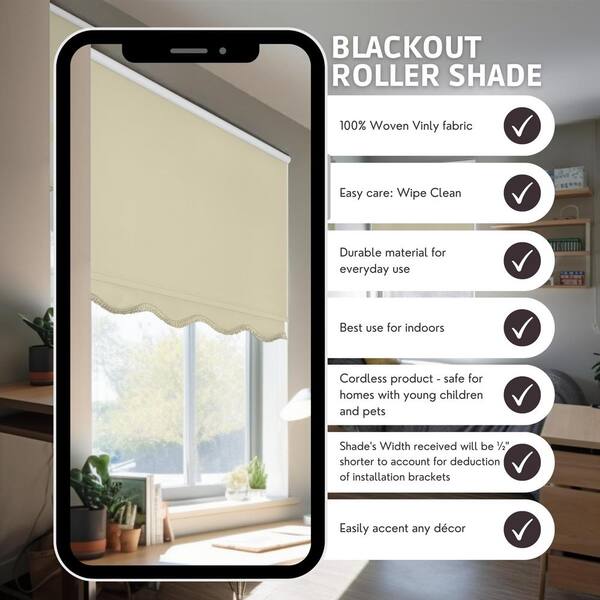 Fringe Cream Solid Cordless Blackout Privacy Vinyl Roller Shade 39.75 in. W x 64 in. L