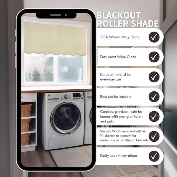 Fringe Cream Textured Cordless Blackout Privacy Vinyl Roller Shade 30.5 in. W x 64 in. L