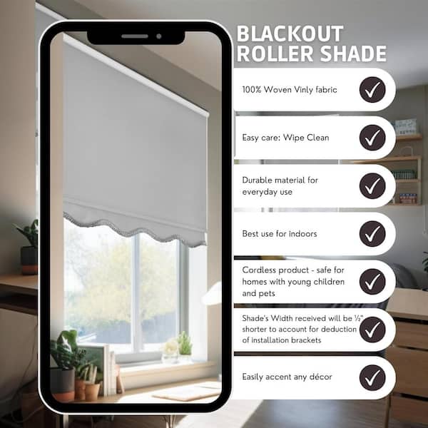 Fringe Gray Solid Cordless Blackout Privacy Vinyl Roller Shade 40.5 in. W. x 64 in. L