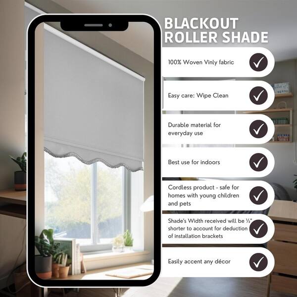 Fringe Gray Solid Cordless Blackout Privacy Vinyl Roller Shade 43.25 in. W x 64 in. L