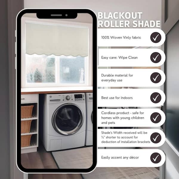 Fringe Ivory Textured Cordless Blackout Privacy Vinyl Roller Shade 22.25 in. W x 64 in. L
