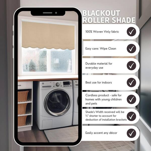 Fringe Sand Textured Cordless Blackout Privacy Vinyl Roller Shade 21 in. W x 64 in. L