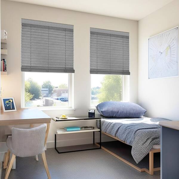 Gray Textured Cordless Darkening Faux Wood Blinds with 2 in. Slats - 45.25 in. W x 72 in. L