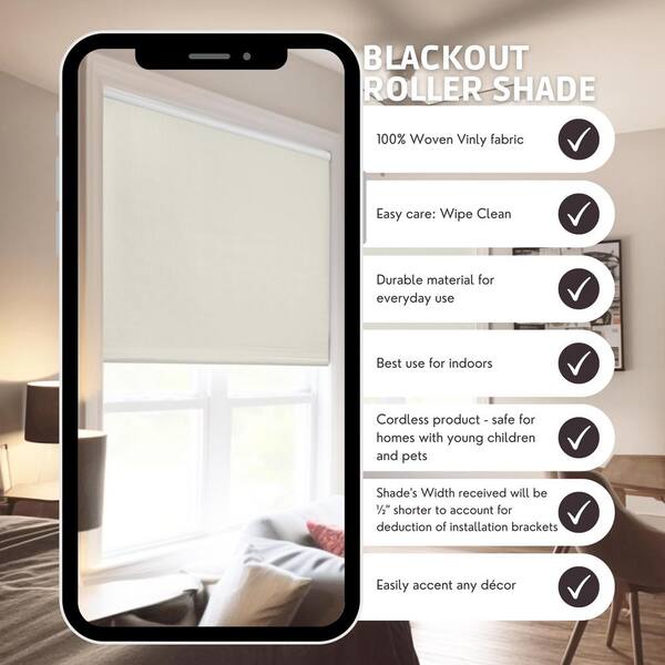 Ivory Textured Cordless Blackout Privacy Vinyl Roller Shade 54.75 in. W x 64 in. L