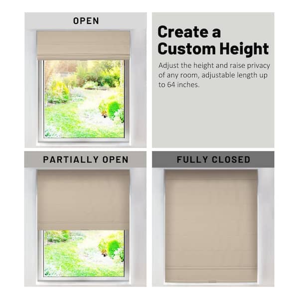 Khaki Cordless Room Darkening Privacy Polyester Roman Shade 27 in. W x 64 in. L