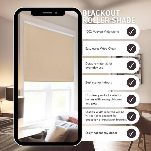 Sand Textured Cordless Blackout Privacy Vinyl Roller Shade 70.25 in. W x 64 in. L