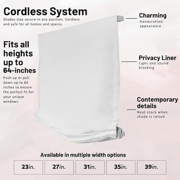 White Cordless Light Filtering Privacy Polyester Roman Shade 31 in. W x 64 in. L