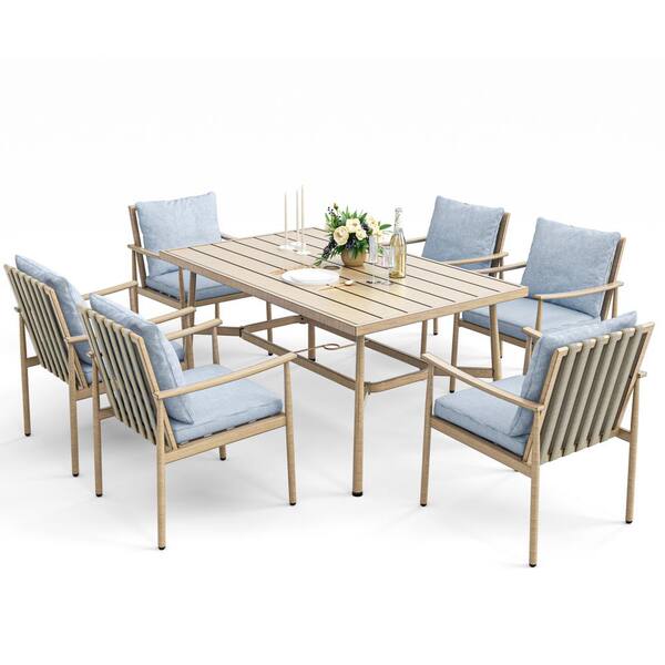 Sunset Retreat 7-Piece Aluminum Outdoor Dining Set with Blue Cushions