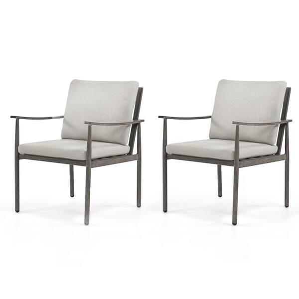 Sunset Retreat Aluminum Outdoor Patio Dining Chairs with Light Gray Cushions (2-Pack)
