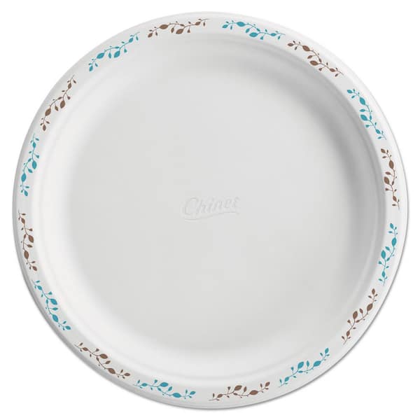10.5 in. White Disposable Fiber Plates, Molded, Vine Theme, 125 / Pack, 4 Packs / Carton