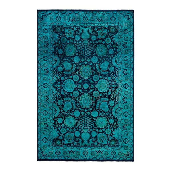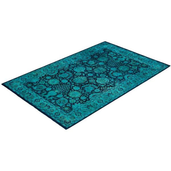 Fine Vibrance Blue 5 ft. x 8 ft. Solid Wool Indoor Area Rug
